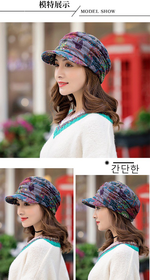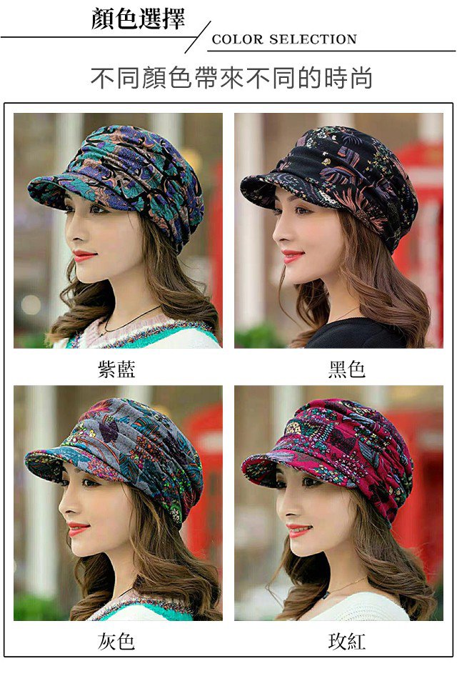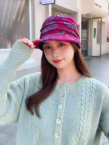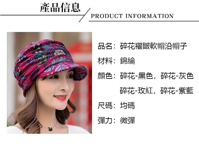碎花褶皺軟帽沿帽子